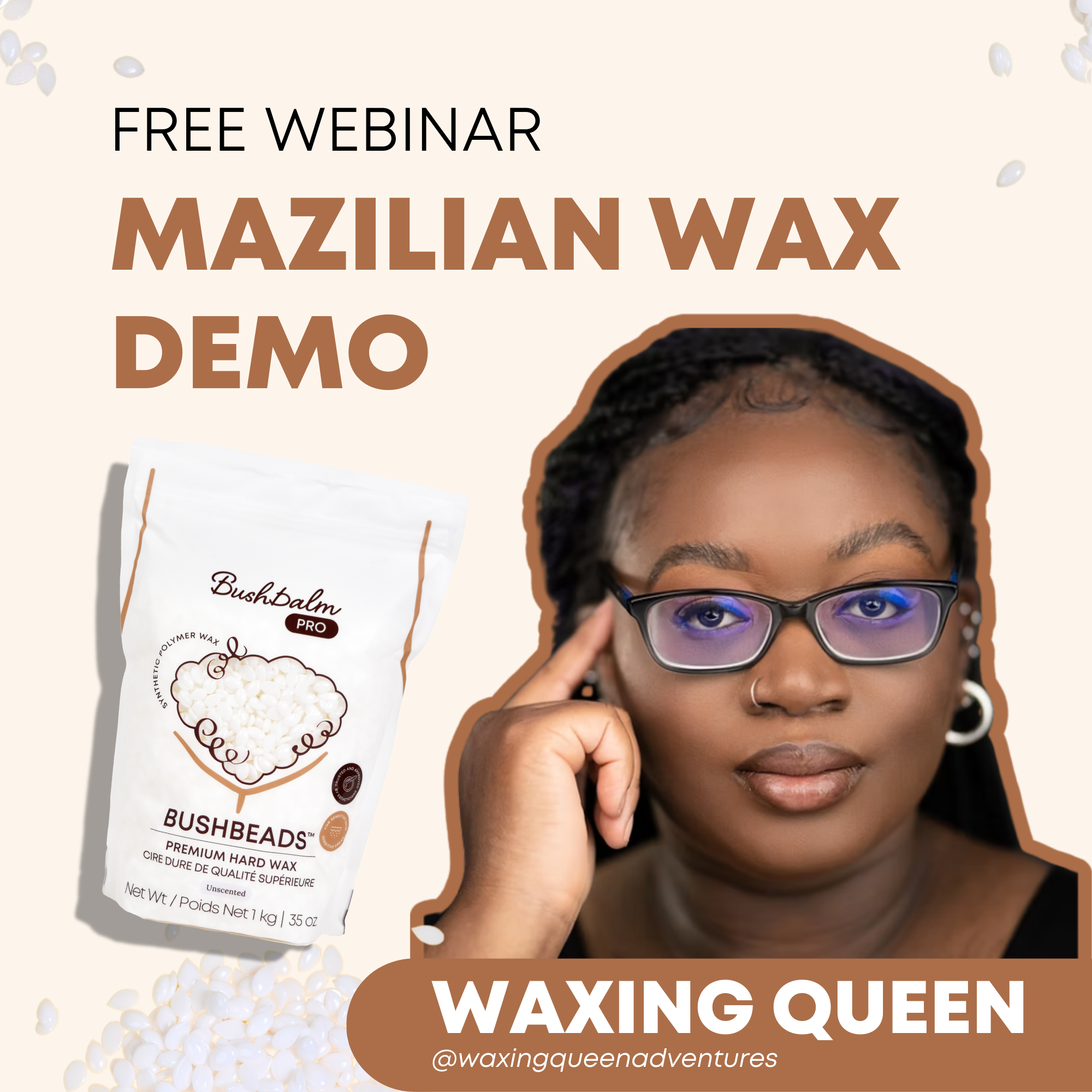 Join Elda (@waxingqueenadventures), for a free virtual demo of our Bushbeads™ Premium Hard Wax and other backbar game-changers on a live male wax model.